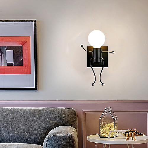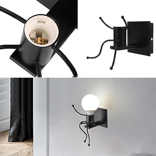 Lampada da parete in metallo Creativo Vintage Lampada a Muro Cartoon all'interno Tipo di Robot Nero Retro Applique da Parete Ferro E27 per Camera da letto Corridoio Sala da pranzo