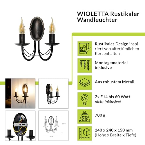 Lampada da parete in metallo marrone antico cucina corridoio soggiorno D: 15 cm E14 massimo 60 watt candele incluse Lampada da parete classica camera da letto WIOLETTA
