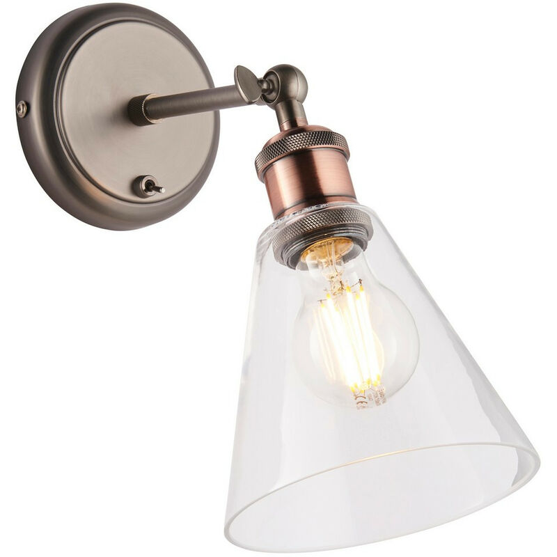Lampada da parete in metallo Peltro invecchiato, lastra di rame invecchiato | Finitura: peltro invecchiato e rame invecchiato | Materiale: acciaio e vetro Altezza (cm): 26,70 | Larghezza (cm): 17,00 | Tipo di lampada: E27 | Numero di luci: 1 | Grado IP: IP20 | Interruttore: interruttore a levetta | Lampadina inclusa: No | Potenza (max): 10W | Peso (kg): 0,78