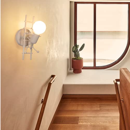 Lampada da Parete Moderna, Applique da Parete per Decorazione D'interni, Faretti da Parete a Humanoid Creativo E27 per Camera dei Bambini, Camera da Letto, Corridoio, Scala, Sala da Pranzo (Bianco)