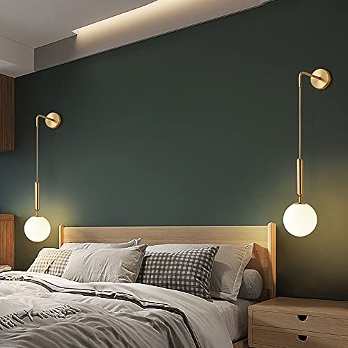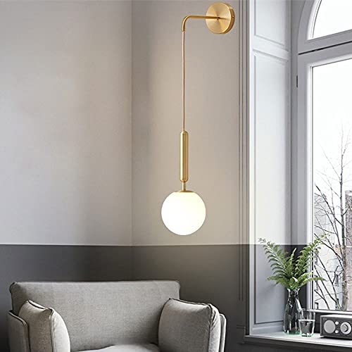 [Stile di design]: moderna lampada da parete nordica, paralume a forma di globo bianco crema, applique da parete regolabile in altezza in metallo con applique geometriche da comodino, che possono completare la decorazione dello spazio e aggiungere più personalità alla decorazione della tua casa.