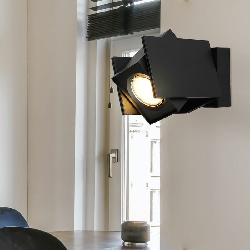 Descrizione Questa moderna lampada da parete colpisce per il suo design elegante. L'alloggiamento è realizzato in alluminio nero e metallo in una forma astratta. Questo rettangolo contiene una presa GU10, che consente di determinare autonomamente il colore della luce e la luminosità, fino a una potenza massima di 5 watt. La lampada non è inclusa nella fornitura. Lampada dettagli • Tipo di prodotto: lampada da parete • Materiale: metallo, alluminio • Colore nero • Lo spot può essere ruotato • Grado di protezione: IP20 • Classe di protezione: 1 • Lunghezza x larghezza x altezza in cm: 7,8 x 8,4 x 15,7 • Attacco: 1x GU10 • Lampadine incluse: No • Potenza della lampada: massimo 1x 5 watt • Alimentazione: 230V, 50Hz