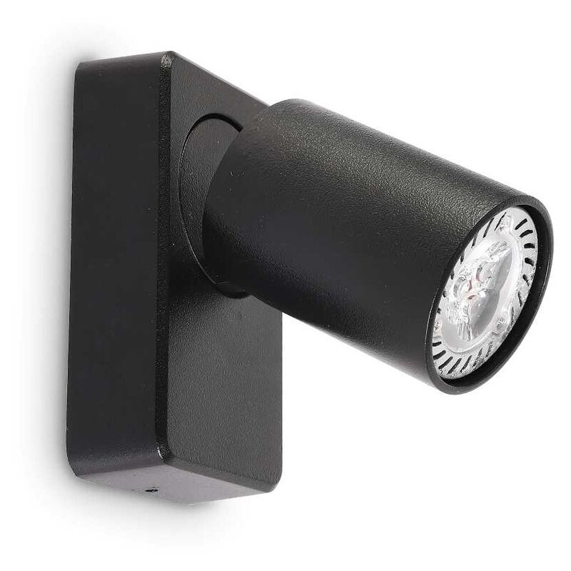 Lampada da parete nero L 70 x H 130 x P min 90 - max 115 mm Caratteristiche: Lampadina inclusa=Yes Kit fissaggio=No Attacco lampada=GU10 Volt=220-240 V AC Watt=GU10 max 1 x 35W Finitura=nero Colore rosone=nero Materiale=Metallo Dimensioni= L 70 x H 130 x P min 90 / max 115 mm