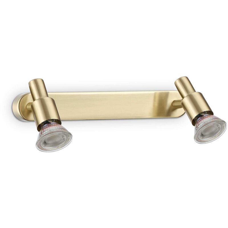 Lampada da parete ottone L 260 x H 100 x P 130 mm Caratteristiche: Lampadina inclusa=Yes Kit fissaggio=No Attacco lampada=GU10 Volt=220-240 V AC Watt=GU10 max 2 x 50W Finitura=ottone Colore rosone=ottone Materiale=Metallo Dimensioni= L 260 x H 100 x P 130 mm