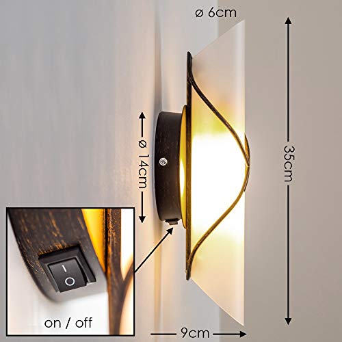 Lampada da parete "Palma", paralume marrone dorato in vero vetro con interruttore alla lampada da parete, senza lampadina/e