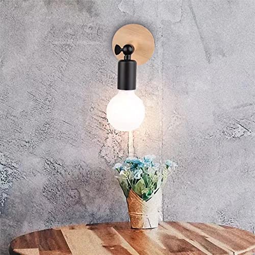 Lampada da parete a LED 2 pezzi Applique moderne in legno Applique da parete in ferro industriale a 180° per illuminazione domestica di bar e caffetteria, E27