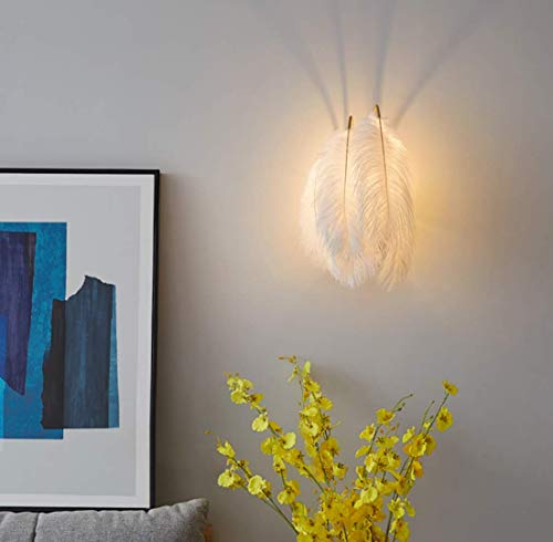 Lampada da parete in piuma Paralume in piuma Base in metallo Applique da parete a LED Applique da parete con lampadina calda 3W per sala da pranzo, soggiorno, camera da letto, ristorante
