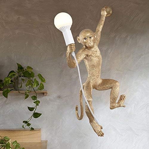 Lampada Da Parete In Resina Scimmia, Lampada Da Parete Scimmia, Moderna Lampada Da Comodino Creativa(Color:Oro (sinistra))