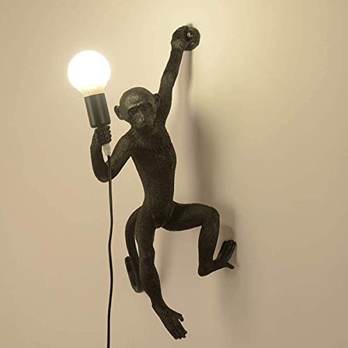 Lampada Da Parete Resina Vintage Applique A Muro Luce Design Scimmia Creativa Presa E27 Con Cavo Spina E Interruttore Illuminazione Industriale Per Camerette Camere Da Letto Ristorante Bar Cafe,Nero