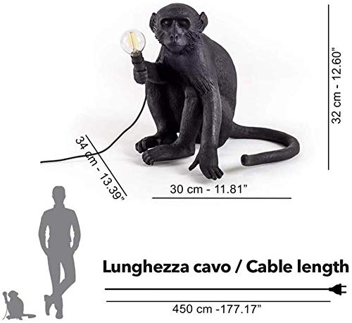 Lampada Da Parete Scimmia Lampada A Sospensione Paralume Cavo Lampada In Resina Nordic Lampadario A Soffitto Creativo E27 Lampada In Acrilico Lampada A Sospensione Scimmia Per Balcone-Nero_Seduta