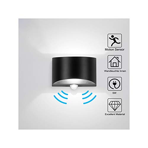 Lampada da parete con sensore di movimento per interni, 7 W, luce bianca fredda, lampada da parete a LED per interni, in alluminio, luce notturna per corridoio, scale, garage, soggiorno