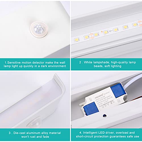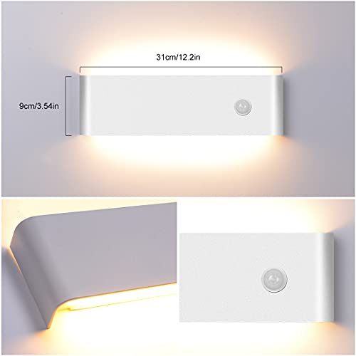 Lampada da parete con sensore di movimento interno 12 W bianco caldo, lampada da parete a LED per interni, in alluminio, lampada interna con sensore di movimento per soggiorno, corridoio, scale