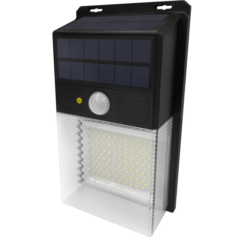 Applique ricaricabile con luce solare. Batteria al litio da 2200 mAh/3,7 V. Design con 228 LED frontali. Movimento e sensore crepuscolare.