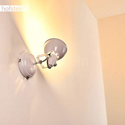Lampada da parete Tina, lampada da parete regolabile in metallo di colore bianco, 1 luce, E14, spot da parete dal design retrò/vintage con interruttore on/off sull'alloggiamento, senza lampadina/e
