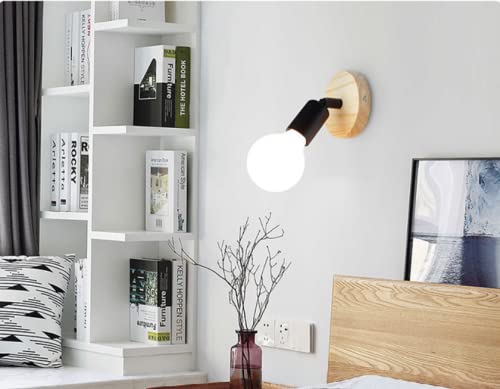 2 Pcs Lampada da parete vintage Applique da Parete Interno in Legno Lampada a Muro per Soggiorno, Camera da Letto, Decorazione Industriale