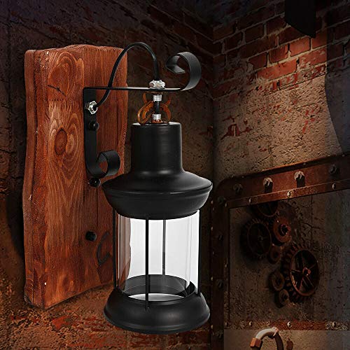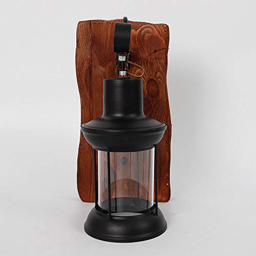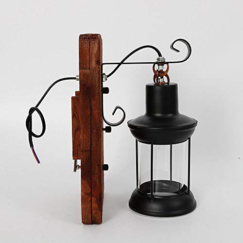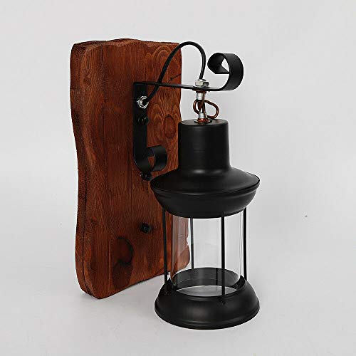 Lampada da parete vintage industriale, in legno, stile retrò, per ristorante, corridoio, ingresso, bar, caffetteria, camera da letto, comodino, lampada da parete in vetro (rettangolare)