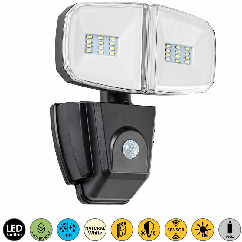 Lampada a parete Zlarin Plastica LED nero LED 12W IP44 4000K L: 20 cm B: 12 cm H: 23 cm con sensore Dimensioni in mm: Lunghezza: 200, larghezza: 120, altezza: 230, Peso in kg: 1.122 Tipo di lampada/socket: LED Lampada contenuta: Sì Prestazioni massime in Watt: 12w Colore chiaro in Kelvin: 4000k Colore chiaro: Bianco neutro Flusso luminoso in lume: 700 Classe di protezione: ip44 Dimmbar: No Switch: Sì Sensore: Sì Materiale per la casa: Plastica Colore abitativo: schwarz Materiale vetro/picchi: plastica Colore vetro/ombrello: bianco Informazioni aggiuntive: Rilevatore di movimento, sensore di luce