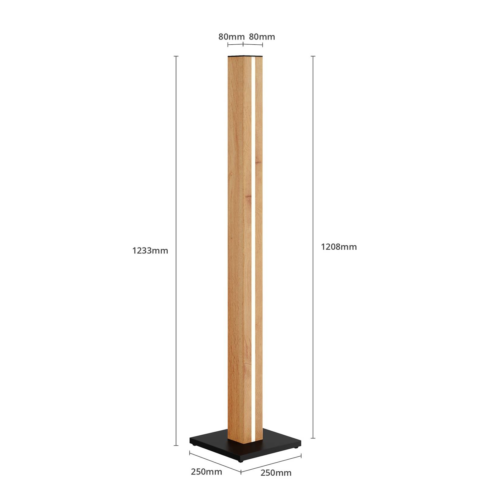Lampada da terra Eldder LED in impiallacciatura di rovere chiaro con dimmer La base della piantana LED Eldder è in metallo nero e ha una forma quadrata. Il corpo dell'apparecchio, impiallacciato in rovere chiaro, è fissato al centro della base. Nella parte anteriore dell'apparecchio è incastonata una striscia sottile, attraverso la quale la luce viene diretta verso l'esterno. Il colore di luce è piacevolmente Warm e crea un'atmosfera accogliente nella stanza, mentre la combinazione di materiali e colori crea un Look moderno e Natur nella zona giorno. Eldder può essere utilizzata in diversi ambienti, ad esempio nel soggiorno o nella sala da pranzo, nel corridoio o nella camera da letto. La lampada è collegata alla rete elettrica tramite un cavo in PVC e si aziona con un interruttore a pedale. L'apparecchio Eldder è un prodotto del marchio Envostar, che attribuisce grande importanza alla sostenibilità. Die sono prodotti in Europa, con conseguente riduzione dei tempi di trasporto. Die ha anche un effetto positivo sulle emissioni di CO2. Il legno utilizzato proviene da regioni gestite in modo ecologico e nell'imballaggio non vengono utilizzati materiali usa e getta come plastica o polistirolo.