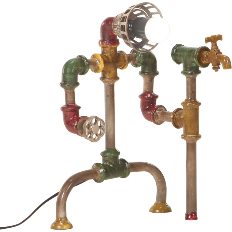 Questa lampada da pavimento vintage e alla moda ha un aspetto retrò di vecchie tubature dell'acqua. Il suo carattere unico e nostalgico è l'ispirazione industriale di cui i vostri interni hanno bisogno. Questa lampada industriale stimola la vostra immaginazione e creatività. È progettata con una valvola decorativa rossa e un rubinetto dell'acqua. La costruzione in ferro colorato la rende resistente e stabile. Nota: la lampadina non è inclusa nella consegna. Colore: Multicolore Materiale: Ferro Dimensioni: 27 x 23 x 42 cm (L x P x A) Potenza: 15 W Tipo di attacco: E27 Design con vecchie tubature dell'acqua, inclusi una valvola e un rubinetto La lampadina non è inclusa Assemblaggio richiesto: Sì SKU: 323720