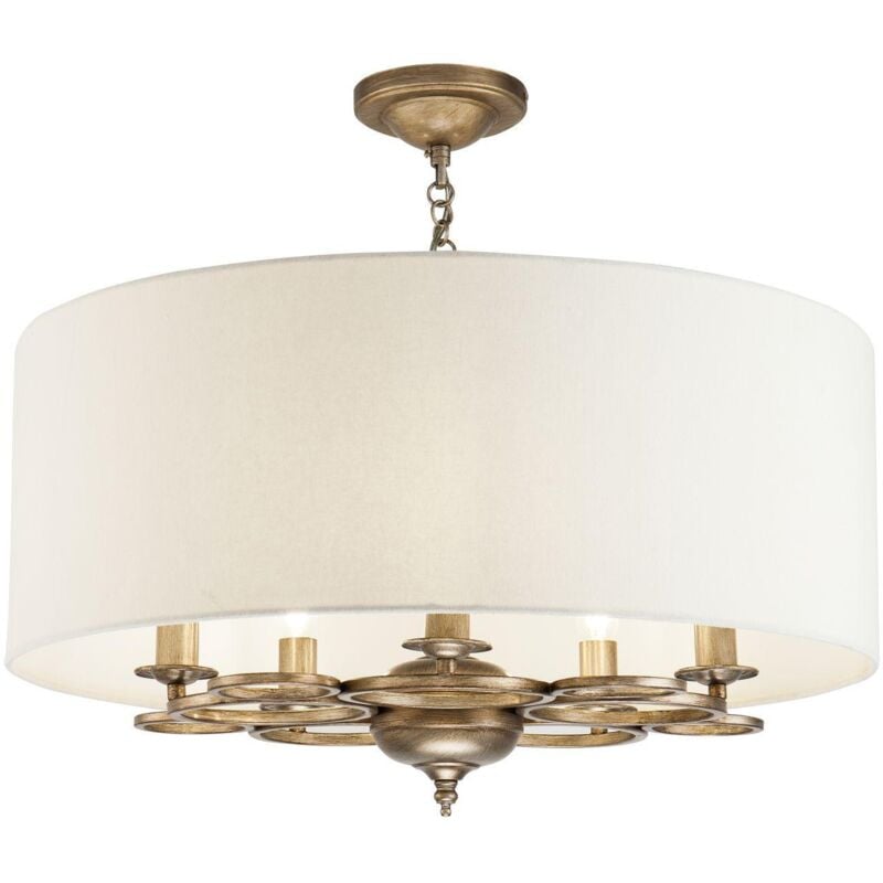 Lampada Lampada pendente House in Metallo Anna Oro Antique Struttura in Metallolo, finitura in oro antico. Paralumi rivestiti di tessuto color crema. Caratteristiche Tecniche Tipo prodotto: Lampada pendente Stile: Classic Collezione: House Nome della serie: Anna Colore corpo: Oro Antique Materiale corpo: Metallo Altezza corpo (cm): 34 Diametro (cm): 62 Altezza massima (cm): 134 Altezza minima (cm): 42,5 Protezione IP: IP 20 Classe protezione: Class1 Voltaggio: AC 220-240 Attacco Lampadina: E14 Quantita lampadine: 5 Potenza lampadina (W): 40 Forma Rosone: Rotonda Altezza rosone (cm): 4,2 Diametro rosone (cm): 13 Tipo Montaggio al soffito: Gancio Lunghezza catena (cm): 95 Materiale paralume: Tessuto su PVC Forma paralume: Cilindro Colore Paralume: Crema Diametro Paralume (cm): 62 Altezza Paralume (cm): 23