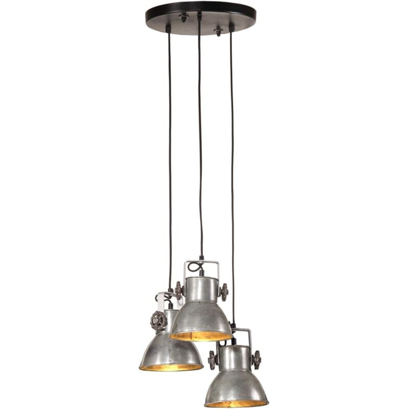 Questa lampada pensile mette decisamente in risalto il soggiorno, la sala da pranzo, l'ufficio, e così via. Materiale resistente: Il ferro è un materiale duro e resistente. È uno dei prodotti preferiti per la costruzione nel campo dei mobili e in quello industriale. Colore dipinto a mano: Siccome ogni pezzo è realizzato a mano, i colori unici variano a seconda di ciascun prodotto. Design con 3 paralumi: La lampada, con 3 paralumi, è dotata di tre prese E27 per lampadine con un massimo di 25 watt. Potete scegliere e installare lampadine E27 dai vari colori di luce, creando un'atmosfera di relax e riposo. Stile industriale: Le tonalità della lampada in ferro, dotata di una finitura vintage lota, si adattano perfettamente agli interni rurali o industriali. Buono a sapersi: Si tratta di una lampada in stile industriale con imperfezioni sul paralume, che dona identità alla lampada e la rende unica grazie al suo aspetto grezzo. Le lampadine non sono incluse. Colore: Nero e argento vintage