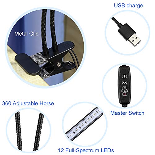 【Braccio Oscillante e Terminale a Doppia Testa a 360 °】 Con braccio flessibile a 360 gradi e morsetto metallico, la Luce per impianti a LED è facile da regolare e posizionare in qualsiasi direzione.
