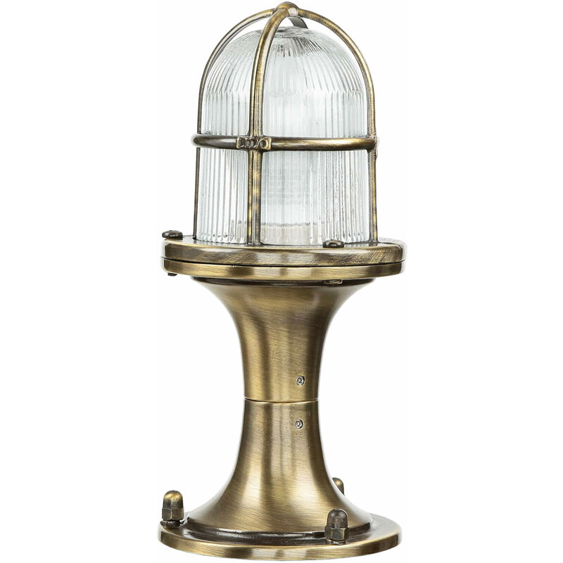 Dettagli del prodotto Materiale: Ottone, vetro Dimensioni: larghezza: 115 mm, altezza: 250 mm, lunghezza: 115 mm Attacco: 1x E27 fino a. 18W Classe di protezione dagli spruzzi: IP54 Colore: Ottone anticato, trasparente Peso: 1400 grammo Descrizione del prodotto La lampada è realizzata in ottone e vetro. Attacco: 1 x E27 con una potenza max. di 18 W (lampadina non incl.) Dimensioni: largezza: 115 mm, altezza: 250 mm, lunghezza: 115 mm, diametro: 115 mm Il paralume in vetro scanalato consente un'illuminazione generosa e rende la lampada da parete ideale accanto alle scale, all'ingresso o al balcone: per una maggiore sicurezza nella vostra proprietàamz_it_bulletpoint_5In vero ottone: resistente alle intemperie;