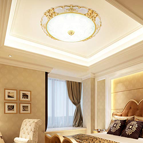 [Design unico della plafoniera in stile europeo]: paralume in vetro vintage ad alta trasparenza, corpo ultrasottile, sorgente luminosa patch LED, motivo rose oro, raffinata decorazione hardware, corpo lampada motivo Shell, paralume in vetro acqua, atmosfera di lusso.