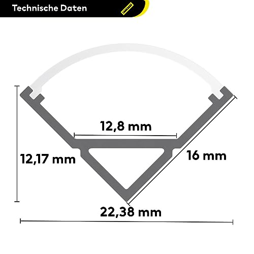 Dimensioni del prodotto: 200 cm (lunghezza), 16 mm (larghezza totale) e 16 mm (altezza) - Guida in alluminio adatta per strisce LED RGB RGBW fino a 10 mm - applicazione soprattutto per angoli, ecc.