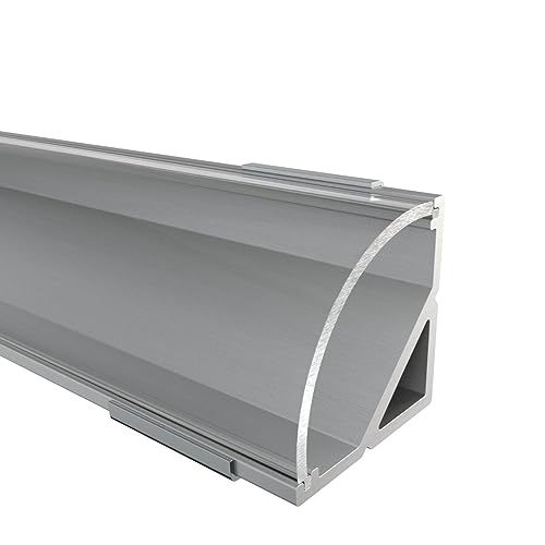 Profilo LED in alluminio anodizzato da 100 cm ANGOLO-rotondo da Alumino con coperchio TRASPARENTE (realizzato in PMMA di alta qualità) per chiudere con uno scatto.