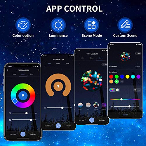 4. Telecomando & Controllo Vocale: Basta premere il telecomando per controllare la luce di notte, le luci, la musica, le canzoni, e la modalità timer rotazione. L'ultima modalità di sfarfallio attivata dal suono consente alla proiezione di cambiare il colore in base al ritmo della musica o battendo le mani, creando un effetto discoteca.
