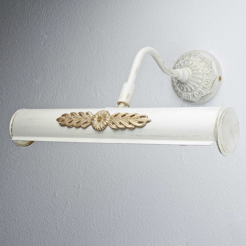 paralume regolabile per orientamento individuale del cono di luce | Larghezza: 300 mm, Altezza: 120 mm, Profondità: 250 mm Finitura superficiale elaborata in stile shabby chic in bianco avorio e oro. Il look usato è creato dalla verniciatura a polvere e dalla successiva colorazione. Questa lampada da parete è adatta per l'illuminazione elegante di immagini, tele, foto o dipinti. Metti in risalto i tuoi tesori con questa illuminazione da parete di design di alta qualità. Questa lampada premium proviene dai tradizionali laboratori di