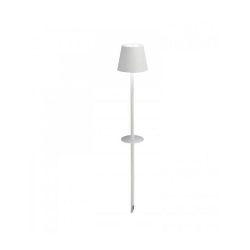 Lampada led ricaricabile Zafferano Poldina con picchetto 2,2W bianco - LD0282B3 Lampada con picchetto e piantana ricaricabile con corpo in alluminio verniciato, diffusore in policarbonato e fonte luminosa a LED. Nella parte superiore della testa è presente un controllo “touch”, che permette l'accensione, la regolazione dell'intensità luminosa e la selezione della temperatura di colore. La lampada è dotata inoltre della funzione di selezione della temperatura di colore della luce tra 2200K, 2700K e 3000K. Poldina ha un grado di protezione IP54 (completamente assemblata) che la rende adatta sia all'uso interno che esterno. La durata della batteria è garantita per più di 9 ore. Tempo di ricarica a 1A: 6 hRicarica con cavetto USB-c Caricabatterie con entrata USB-c incluso nella confezione. Dimensioni Altezza 600mm, Diametro 110 mm Led touch Dimmer 100-240VTemperatura colore 2200-2700-3000KLumen 234-251-256 lmPotenza 2,2W5Vdc max 1A Colore: Bianco Reparto: Adulto Voltaggio: 100-240V