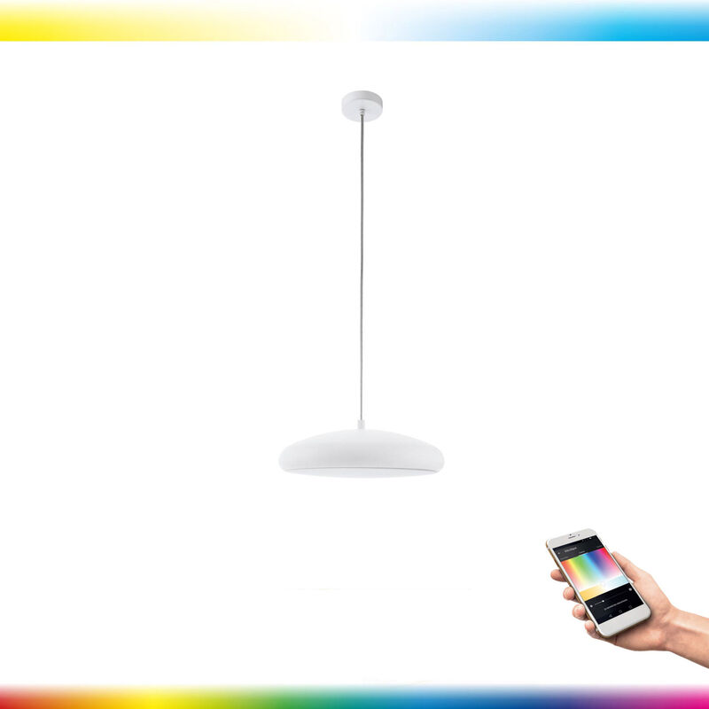 Ciondolo LED Riodeva-C in bianco Ø44,5cm H: 150cm dimmerabile con funzione Connect Il sistema di illuminazione EGLO connect consente di controllare individualmente la luce nella vostra casa e programma. Collegare te facilmente tramite il telecomando Connect o la libera Smart Control App AwoX con le luci e indirizzarli individualmente o in gruppi. Scegli tra una vasta gamma di 16 milioni di colori e 50.000 toni del bianco, DIMME luminosità infinitamente e si crea per ogni momento della vostra atmosfera perfetta vantaggi: veloce e facile installazione: lampade nbsp direttamente con l'EGLO &;
