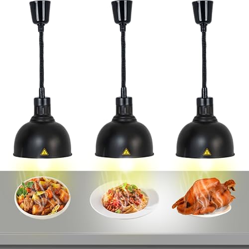 Lampada Riscaldante per Alimenti, Lampade Scaldavivande Cucina Retrattili, 250W Lampade Riscaldanti per Cucina a Buffet Sospesa per Ristoranti, Cucine, Hotel (Nero, 3 Pezzi)