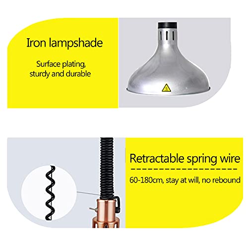 [Design Scalabile]: Lampada per Riscaldamento Alimentare Commerciale adotta il pulsante di regolazione dell'elastico della fune della bobina e la lunghezza retrattile (60-180cm) può essere regolata liberamente. È possibile regolare la lunghezza in base all'altezza del tetto e alle esigenze di riscaldamento degli alimenti.