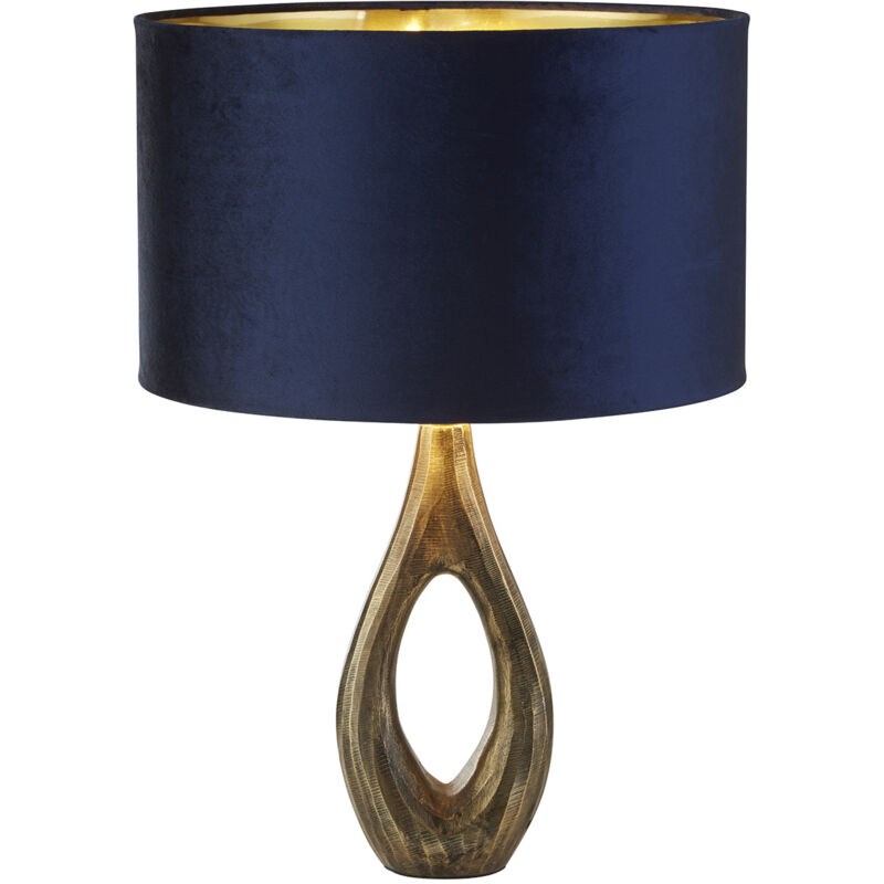 Collezione Bucklow LUCE ACCATTIVANTE La lampada da tavolo Bucklow è un perfetto connubio tra stile e funzionalità. Questa splendida lampada presenta una base in ottone elegante e robusta che garantisce durata e un tocco di eleganza. Il paralume in velluto blu scuro da 40 cm ha un interno dorato metallizzato da aggiungere all'opulenza di questa lampada.