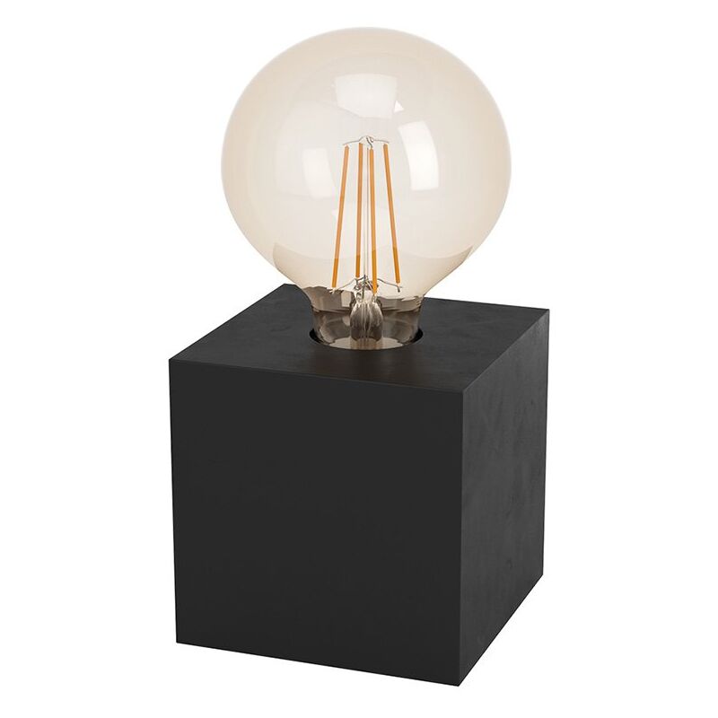 Collezione Prestwick 2 LA LAMPADA CON UN DESIGN FUNZIONALE PER UN'ATMOSFERA ORIGINALE La lampada da tavolo PRESTWICK 2 è composta da un cubo in legno di ficus dal colore nero opaco e da una lampadina in posizione libera.. Questo lumetto si armonizza praticamente con qualsiasi stile di arredamento e può essere accesa e spenta comodamente tramite un interruttore presente sul cavo. É adatta all'utilizzo in qualsiasi ambiente, come il comodino della camera da letto, il soggiorno, il corridoio. La lampadina a filamento, prevista con attacco E27, non è inclusa.