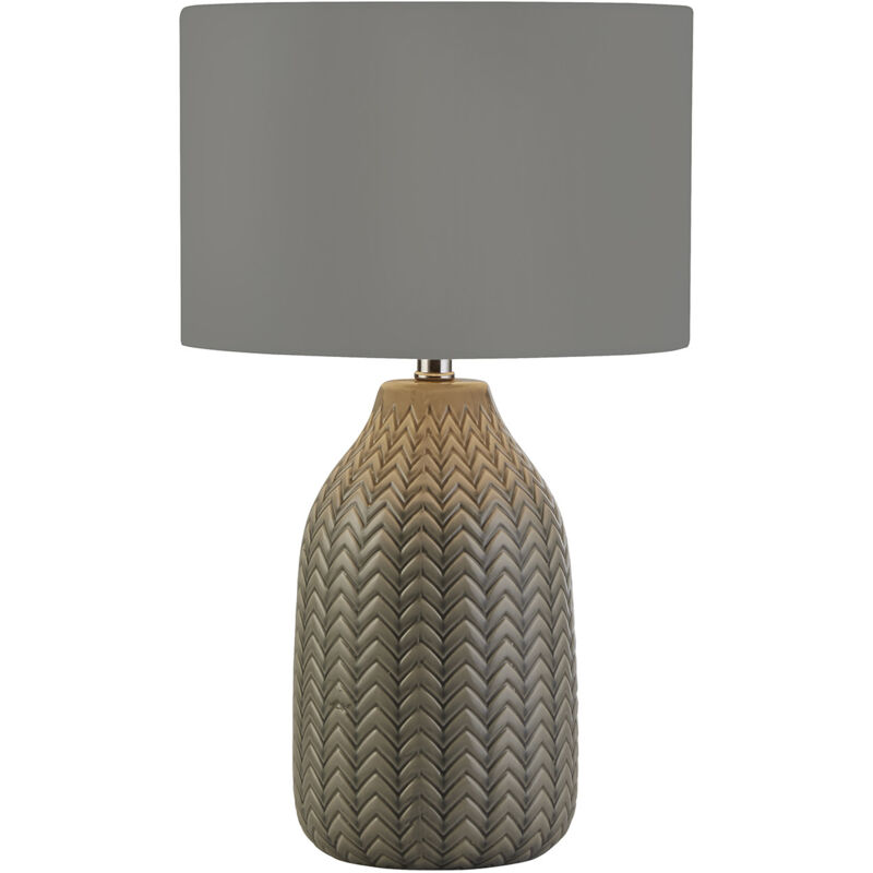 Collezione Fondamentale LUCE AGGIUNTIVA La lampada da tavolo Paramount è l'aggiunta ideale a qualsiasi soggiorno o camera da letto dai colori neutri. Con una base in ceramica grigia con strisce chevron e un paralume in tessuto grigio abbinato, questa lampada da tavolo da 39 cm è ideale per gli spazi più piccoli, aggiungendo il tocco finale a qualsiasi interno.