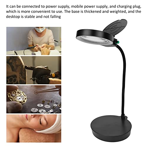 Lampada da Scrivania USB, Lampada da 33 LED, Lampada da Scrivania con Ingrandimento Pieghevole, Anello LED Regolabile 10X Lampada da Tavolo con Lente D'ingrandimento UAB per Tatuaggio(Nero)