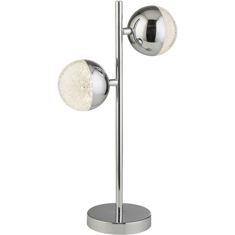 Collezione Marmi ELEGANZA LUSSUOSA Marbles è una splendida lampada da tavolo con finitura cromata con dettagli in cristallo sabbia nel paralume. Il dettaglio delle 2 sfere aggiunge un glamour sofisticato a qualsiasi stanza. La lampada da tavolo è dotata di un portalampada a LED integrato e sarebbe perfetta in un corridoio o in un salotto.