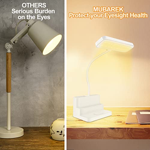 Lampada da Scrivania 30 LED con Portapenne, Oscuramento Continuo Lampada da Tavolo, Luminosità Regolabile, Controllo Touch, Porta di Ricarica USB Protegge l'occhio Lampada Scrivania per Studio e Casa