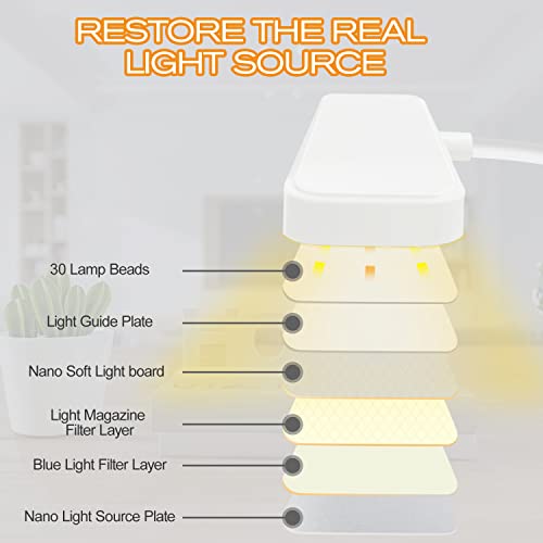 【Prenditi Cura dei Tuoi Occhi】Il lampada scrivania utilizza una scheda filtro a tre strati integrata per ripristinare la vera fonte di luce e dispone di 30 perline di lampade a LED per rendere l'illuminazione più ampia e luminosa, luce uniforme, assenza di abbagliamento, assenza di sfarfallio, maggiore cura per gli occhi, riducendo efficacemente l'affaticamento degli occhi, adatto per imparare, scrivere, dipingere, fare