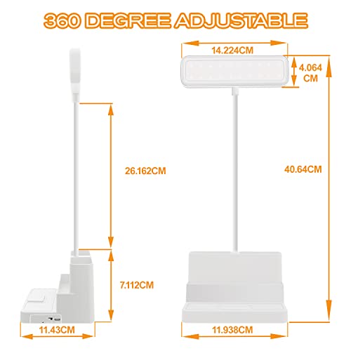 【Collo d'oca Regolabile a 360°】La lampada led da tavolo adotta un design di regolazione morbida che può dirigere la luce in qualsiasi direzione per soddisfare le tue esigenze e le lampade da tavolo a LED sono leggere e hanno una grande batteria integrata da 1200 mAh, 3 ore di autonomia alla massima luminosità, 24 ore di durata della batteria alla minima luminosità. Puoi usarlo facilmente a casa, in ufficio, in biblioteca e quando esci o viaggi