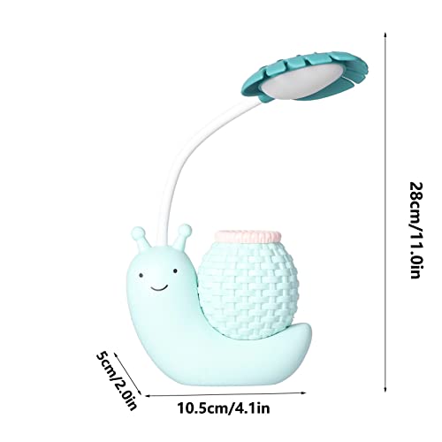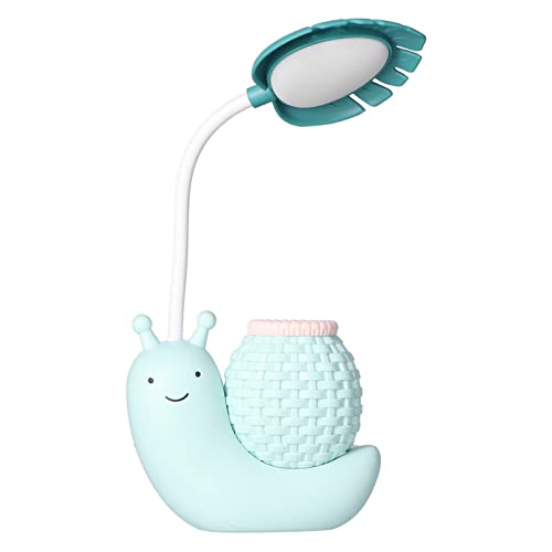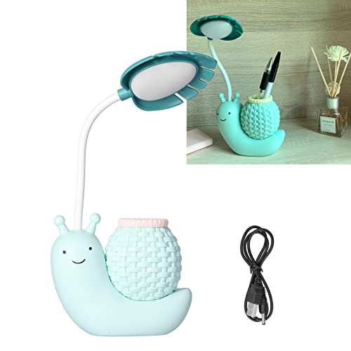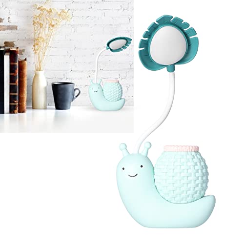 Lampada da Scrivania a LED con Portapenne Lampada da Tavolo a Forma di Lumaca Animale dei Cartoni Animati Funzione Multipla Ricarica USB Lampada da Scrivania Carina a Collo di Cigno per Studenti(blu)