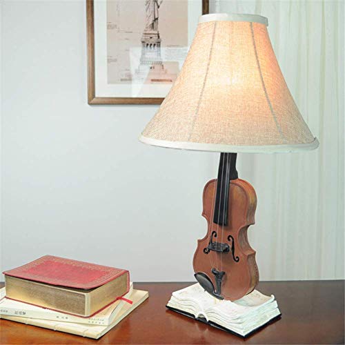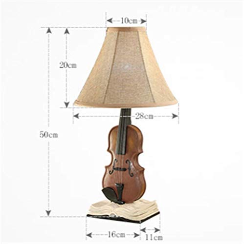 Lampada da scrivania Lampada da studio per ufficio Creativo Antico Soggiorno Camera da letto Lampada da comodino Tessuto di cotone Paralume Finto legno Resina Resina Violino Lampada da tavolo E27 Luc