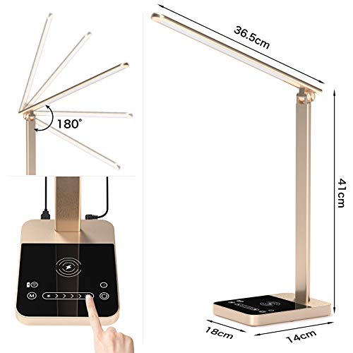 Lampada da Scrivania LED,Lampada da Tavolo Protezione Degli Occhi,Dimmerabile,Touch Control,6 Livelli di Luminosità 3 Modalità,Ricarica Wireless,Porta di Ricarica USB[Classe efficienza energetica A++]