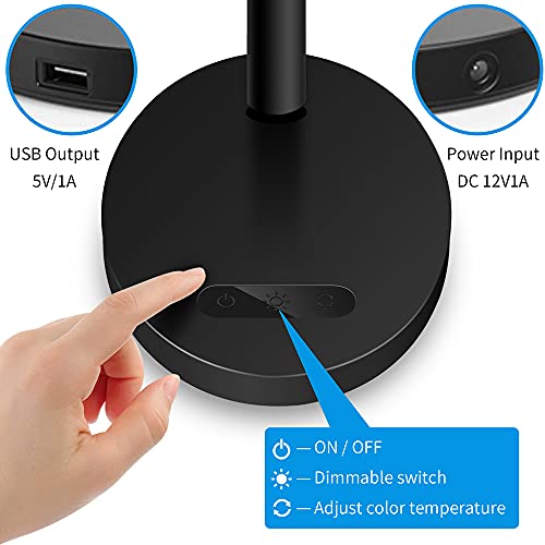 Lampada da scrivania LED,lampada da tavolo regolabile da ufficio con ricarica USB, 9 modalità di luce (3 CCT:3000K/4000K/6500K+ 3 livelli di luminosità),design minimalista tascabile, 500LM/7W/100-240V