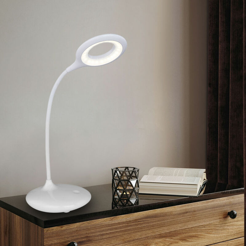 Descrizione Questa lampada da tavolo bianca dona una fantastica luce alla tua scrivania. Questa lampada da tavolo alta 49 cm con sorgente luminosa LED inclusa (5W) fornisce 260 lumen di luce. La piacevole luce da 4000K crea un'atmosfera accogliente. Questa luce flessografica (batteria inclusa) è facilmente gestibile tramite un touchscreen. Con gli altri colori di questa serie nulla ostacola la progettazione individuale del vostro spazio abitativo. La sorgente luminosa a LED è installata in modo permanente nella lampada. Lampada dettagli • Tipo di lampada: lampada da tavolo • Materiale: plastica • Colore bianco • braccio lampada flessibile • Dimmer touch • Batteria inclusa: 1x CR18650 • Cavo USB incluso • Tempo di ricarica: 2,5 ore • Tempo di illuminazione: circa 4-6 ore • Grado di protezione: IP20 • Classe di protezione: 3 • Lunghezza x larghezza x altezza in cm: 40 x 12,5 x 49 • Sorgente luminosa: LED • Lampadine incluse: sì (installate in modo permanente) • Potenza lampada: 5 watt