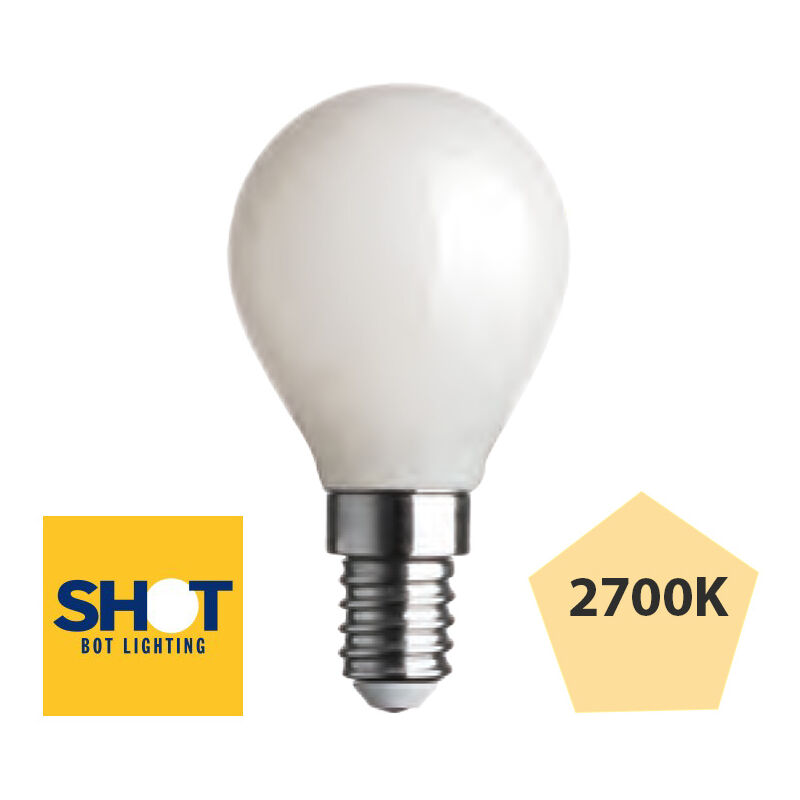 Lampada a led sfera full light dimmerabile E14 4,5W colore della luce 2700K luce calda, fascio largo di 360 e 470 lumen Lampada a led sfera full light E27 4,5W colore della luce 2700K luce calda, fascio largo di 360 e 470 lumen
